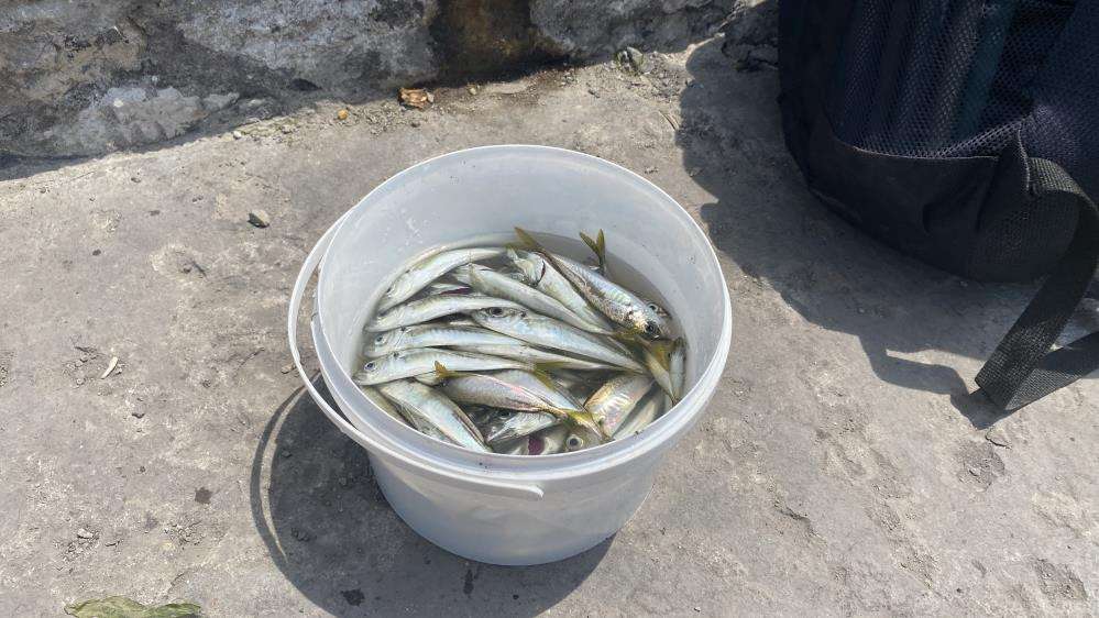 Zonguldak’ta yunusların kovaladığı, yüzlerce istavrit limana sıkıştı. Bazı vatandaşlar ellerine oltaları alarak adeta kova kova balık avladı.